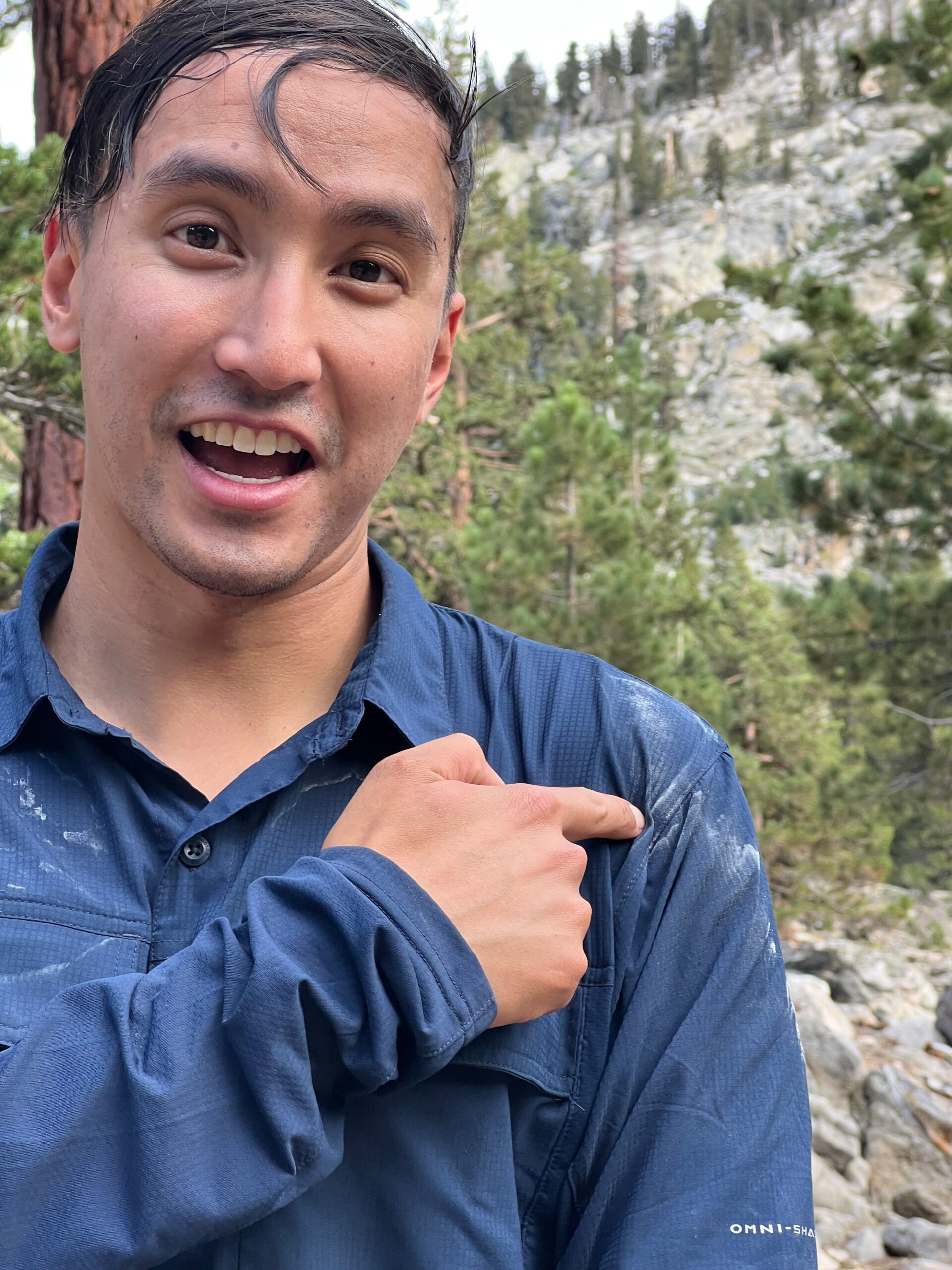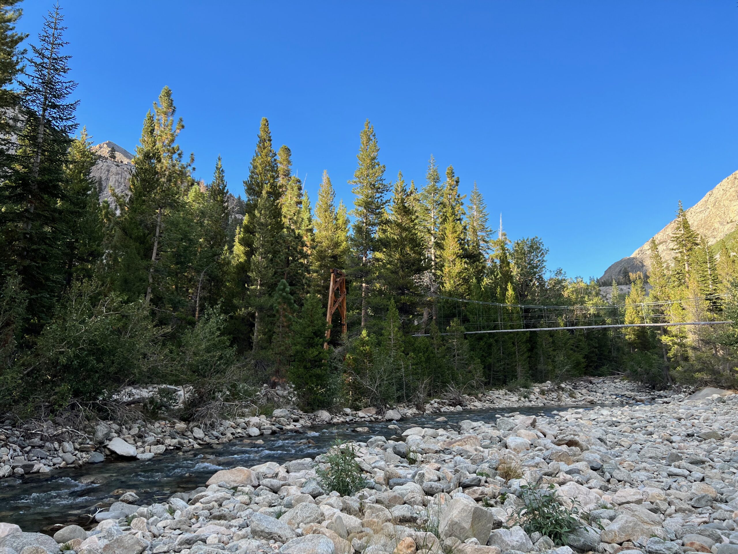 Had a slow start and slept in since none of us had good sleep. Also my brand new air pillow had a leak already (I was pissed). We camped near the bear box which was not the best idea since other people opened it up early in the morning while we were sleeping. We started hiking at 11:30 AM. 2600 feet of elevation gain. This ended up killing us since we were hiking during the hottest part of the day up through a valley with rocky steps and it was rough. It was probably upwards of 90 degrees with very little shade. We were taking all the breaks we could whenever we found shade. We eventually made it to Wood’s Creek where we could camp for the night but we were pretty worn down from the day. Wood’s Creek was a really nice camping though, we even got to cross a suspension bridge.