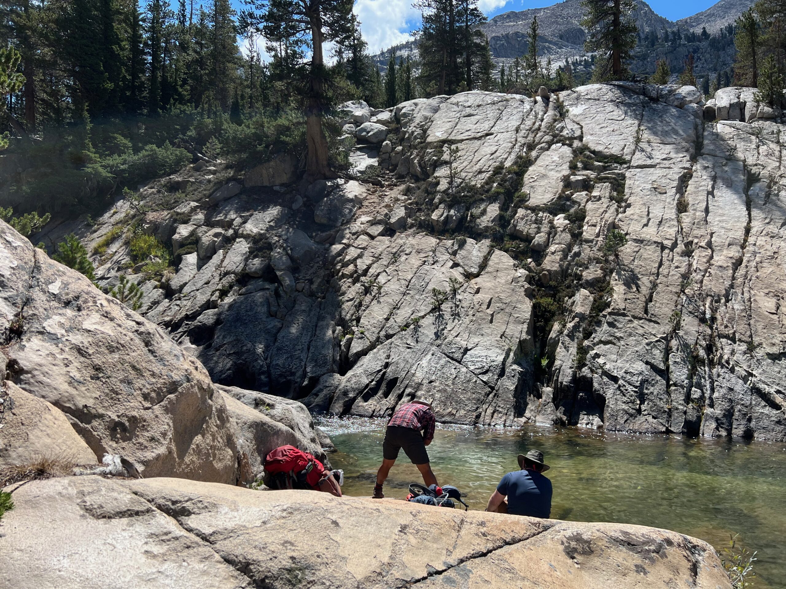 Hiked from Charlotte Lake to Junction meadow starting at 10 AM. Took a little detour to a small stream where we took a small dip. The campsite at junction meadows had its own little private pool area. We had a fire out at our camp site and there was a dead tree not too far away.