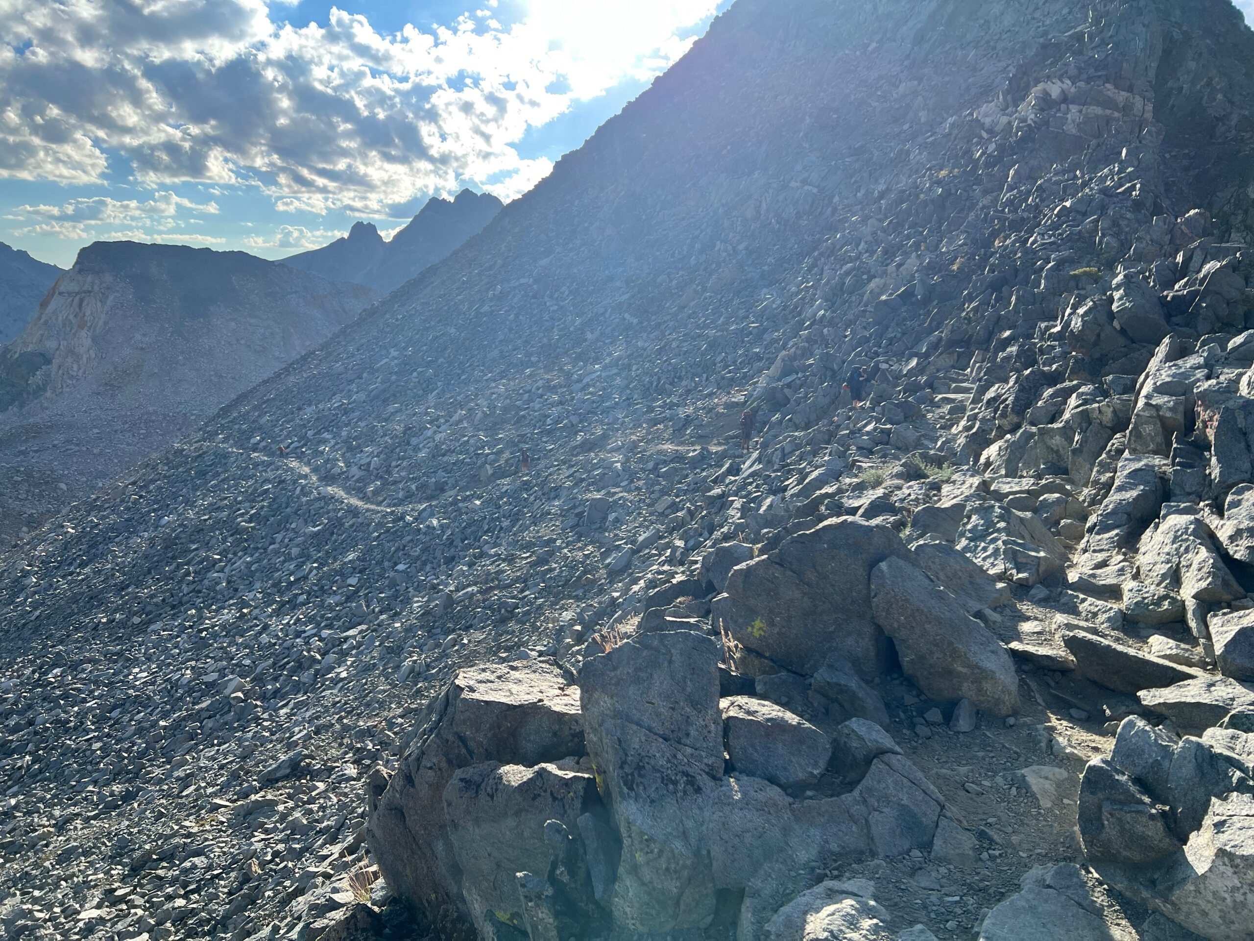 Zero day at Rae Lakes. The campsite we had was hands down the best camp site I have ever been to. It was hidden from all the other spots but had an almost panoramic view of Rae lakes against the backdrop of Glen’s pass. It was nice to relax and recover so we could get ready to hike Glen’s Pass early next day. We plan on being on the trail by 6 AM so waking up around 4 AM. Went for a quick dip in the lake which felt great.